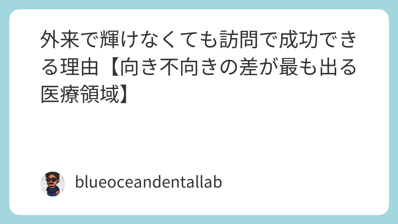 外来で輝けなくても訪問で成功できる理由【向き不向きの差が最も出る医療領域】