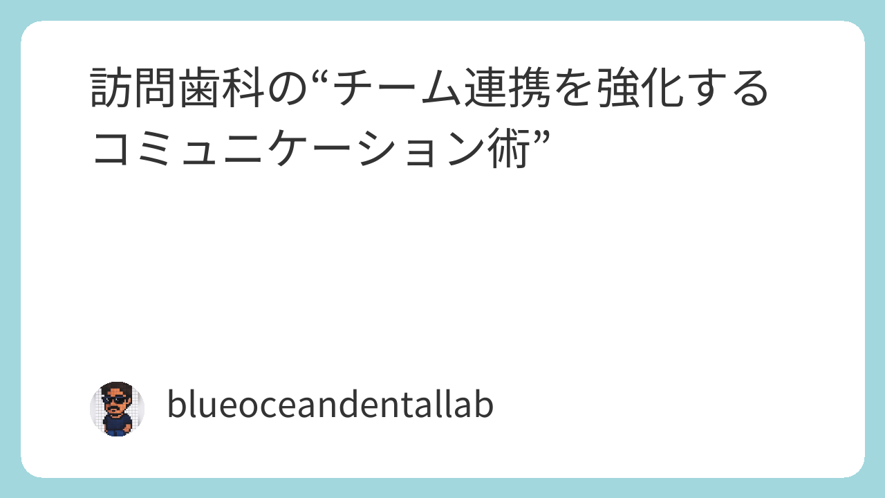 訪問歯科の“チーム連携を強化するコミュニケーション術”