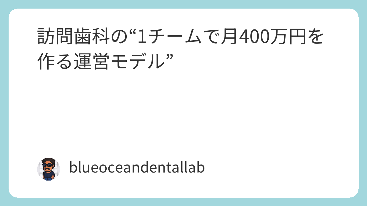 訪問歯科は “構造さえ作れば勝手に売上が積み上がる医療” であり、