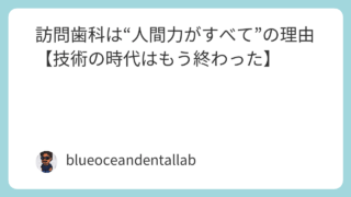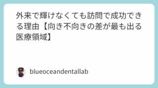 結論(この記事の要点)訪問歯科という領域は、外来のようにスピード・器用さ・手技の華やかさでは勝負が決まらない。むしろ、訪問歯科で成功する院長・歯科医師ほど“人間力が強い”。そしてここでいう人間力とは • 誠実さ • 丁寧さ • 継続して約束を守る力 • 相手の立場で考えられる • 感謝を忘れない • 安定感こうした、誰でも磨けるが、簡単には真似できない部分 のこと。訪問歯科は“高齢者 × 施設 × 家族 × スタッフ × 医療”という複雑な社会の真ん中に立つため、最終的にすべては人間性が成果に直結する医療モデル になる。⸻訪問歯科は“人のための医療”だからこそ本質が変わる訪問歯科は医療 × 介護 × 生活 × 福祉 × 家族関係これらが全て絡む“総合領域”。だから人間性がそのまま診療クオリティに反映される。外来は • 技術 • スピード • 椅子さばき • 難易度の高い処置これらが評価されやすいが、訪問は • 話し方 • 表情 • 気遣い • 柔らかさ • 安心感 • 信頼こうした“人としての魅力”がそのまま成果になる。ここが外来との圧倒的な違い。⸻訪問歯科が人間力で決まる“5つの理由”⸻① 患者も家族も施設職員も、全員が“人間性”を見る訪問現場は1回の診療に • 患者 • ご家族 • ケアマネ • 施設職員 • リハビリ • 栄養士 • 医師 • 看護師と“多人数”が絡む。誰か1人でも不快に感じたら一瞬で信頼を失う世界。反対に、“感じがいい人” は全方向から愛されて医院が伸びる。⸻② 誠実さが“継続依頼”という形で返ってくる訪問歯科の売上の本質は新規開拓よりも“継続”。継続は“誠実さ”の積み上げでしか生まれない。 • 必ず来てくれる • 約束を守る • 報連相が早い • 困った時にすぐ来る • トラブルに誠実に向き合う • 偉そうにしない • 優しいこうした人間性が病院の継続率=売上の安定を完全に決める。⸻③ 施設との関係性が売上の9割を決めるから施設は“どの歯医者を呼ぶか” の裁量が大きい。その判断基準は技術ではなく「この人たちなら安心して任せられるか?」これだけ。つまり訪問歯科は信頼産業 × 人間産業のハイブリッド。これが利益率の高さを支えている。⸻④ 患者に寄り添える人だけが成果を出せる訪問患者は多くが • 認知症 • 寝たきり • 全身状態が不安定 • コミュニケーション困難“こちらが合わせる”ことが大前提。だから優しさ・粘り強さ・共感力ここに長けている人は訪問で圧倒的に成果を出す。⸻⑤ 訪問の患者は“生き方そのもの”を見せてくれる訪問は • 生活空間 • 家族関係 • 食事 • ベッドサイド • 嚥下の現場まで全て見える。歯だけを診るのではなく“人の人生に触れる医療”。ここで成果を出す人は例外なく人間として魅力がある人。⸻“技術よりも人間性”という時代に入っている高齢化社会はこれからさらに加速する。訪問歯科はこれから20年間伸び続ける領域。なぜか?結局人は技術よりも“誰に診てもらうか”を重視するから。そして高齢者ほど、“人柄”を見て医療の満足度を決める。つまり訪問歯科は人間性がそのまま価値になる唯一の医療領域。このトレンドは絶対に逆転しない。⸻訪問で成功する人の共通点(結論) • 優しい • 誠実 • 素直 • 約束を守る • コミュ力が自然 • 安定感がある • 相手の目線で動ける • コツコツ型 • 責任感があるこれらを持っている人は訪問歯科で“ほぼ確実に伸びる”世界。逆に外来で輝けなかった人が訪問で圧倒的に成功する理由はここにある。⸻まとめ(行動につながる)訪問歯科は技術ではなく人間力が成果を決める医療。高齢化社会において、人の心に寄り添える医療者の価値はこれからさらに高くなる。訪問歯科は“人の本質で勝負する場所”。技術の時代は終わり、これからは“人間力の時代”。そしてその中心にあるのが訪問歯科だ。